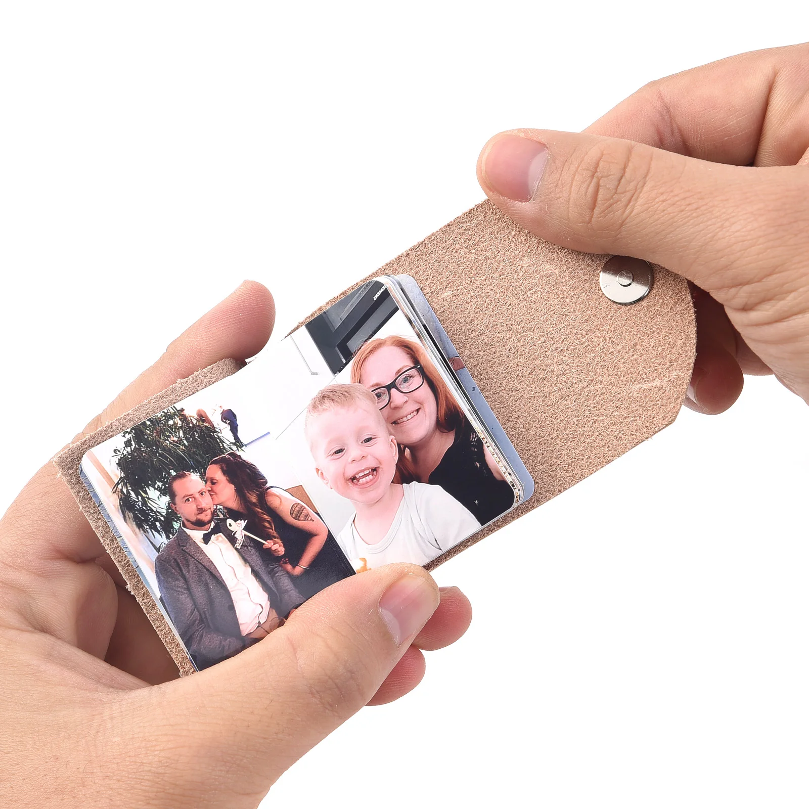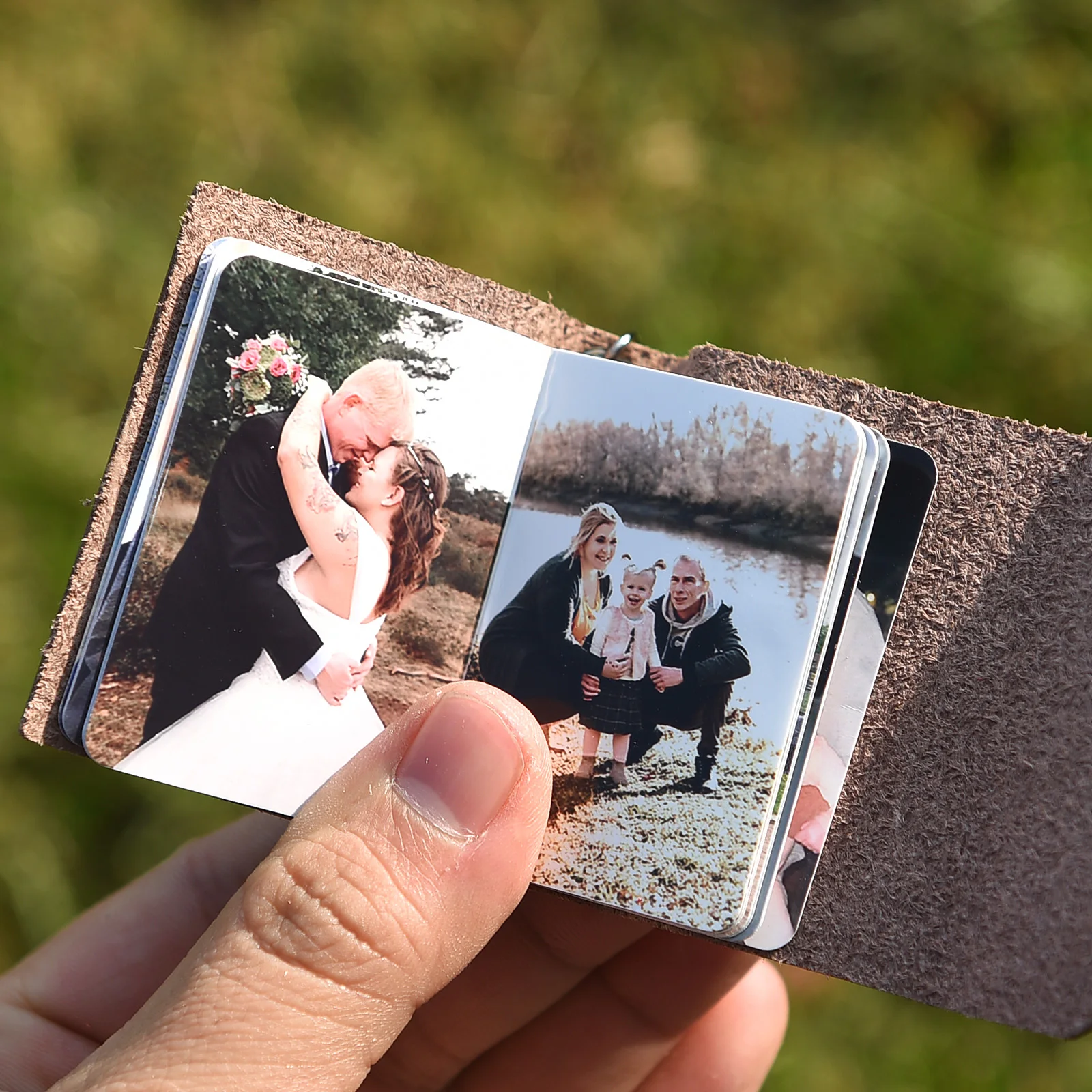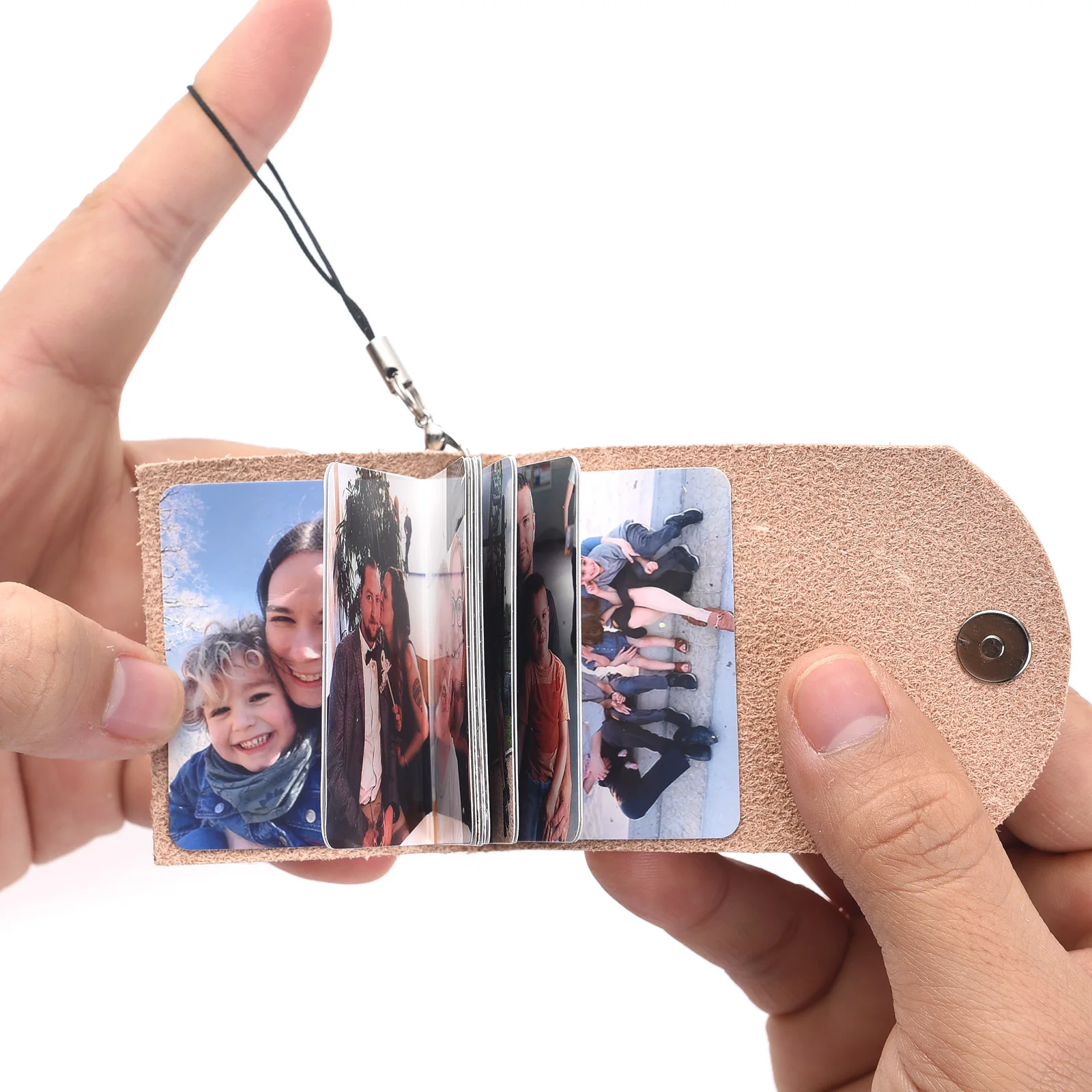 Customized Photo Album Genuine Leather Keychain Couples Gift For Boyfriend Anniversary Personalize Mini Pictures Book Keyrings